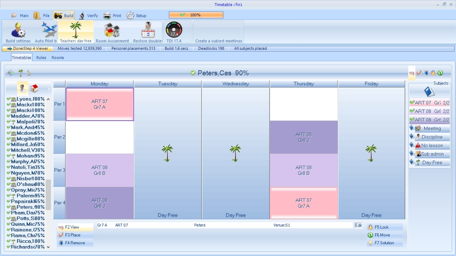 Teachers daily free has always been a problem to be placed. Now with the auto placement it shows the days available and then you can click the best day to place. Must Days can be locked.
